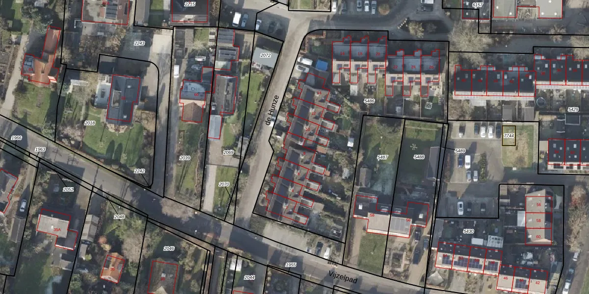 Het perceel waarop de Hunze 8 staat heeft een oppervlakte van 2690 m². Dit is een zeer groot perceel. De perceeloppervlakte wordt geregistreerd door het Kadaster. Gedetailleerde informatie over de maten van dit perceel kunt u vinden in het rapport Kadastrale kaart met maatvoering van de Hunze 8.