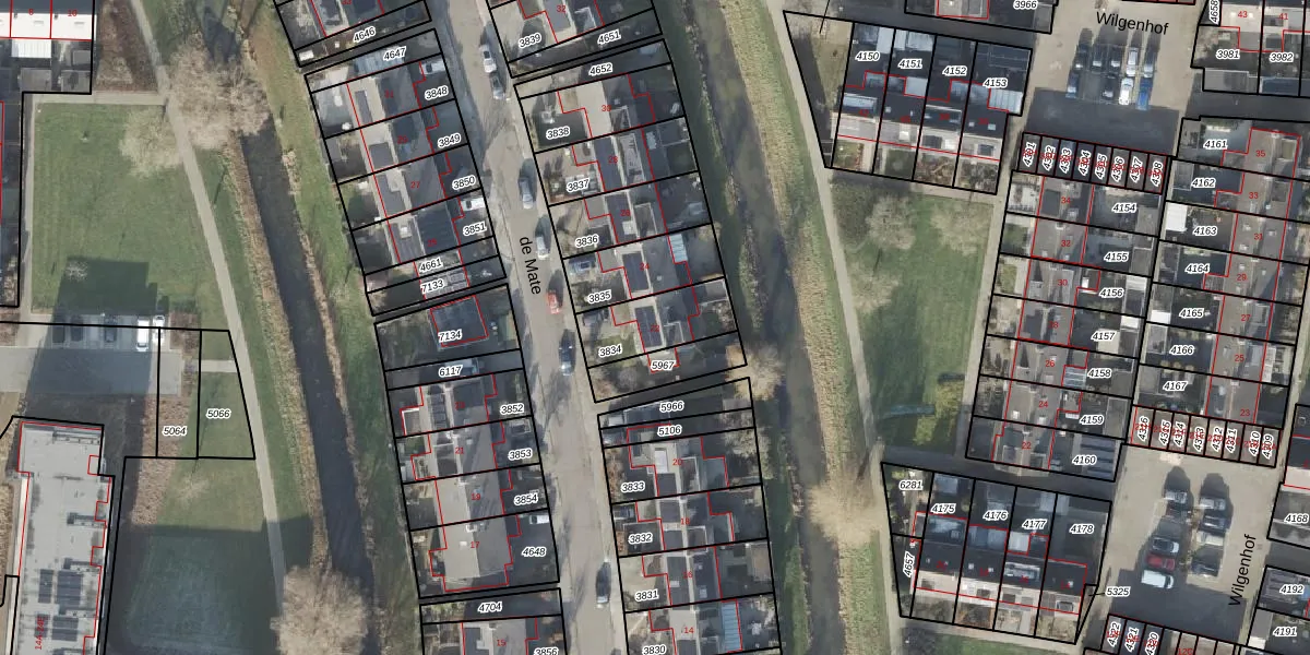 Gebruik de zoekbalk of klik op een perceel voor informatie over de adressen binnen dit perceel.