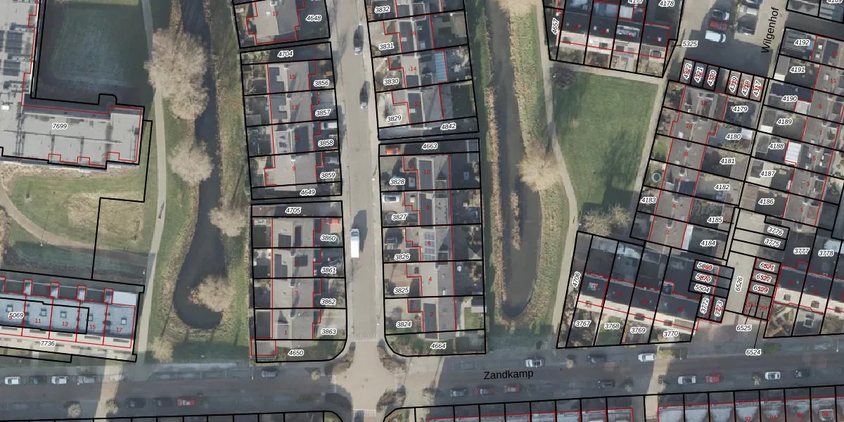 Gebruik de zoekbalk of klik op een perceel voor informatie over de adressen binnen dit perceel.