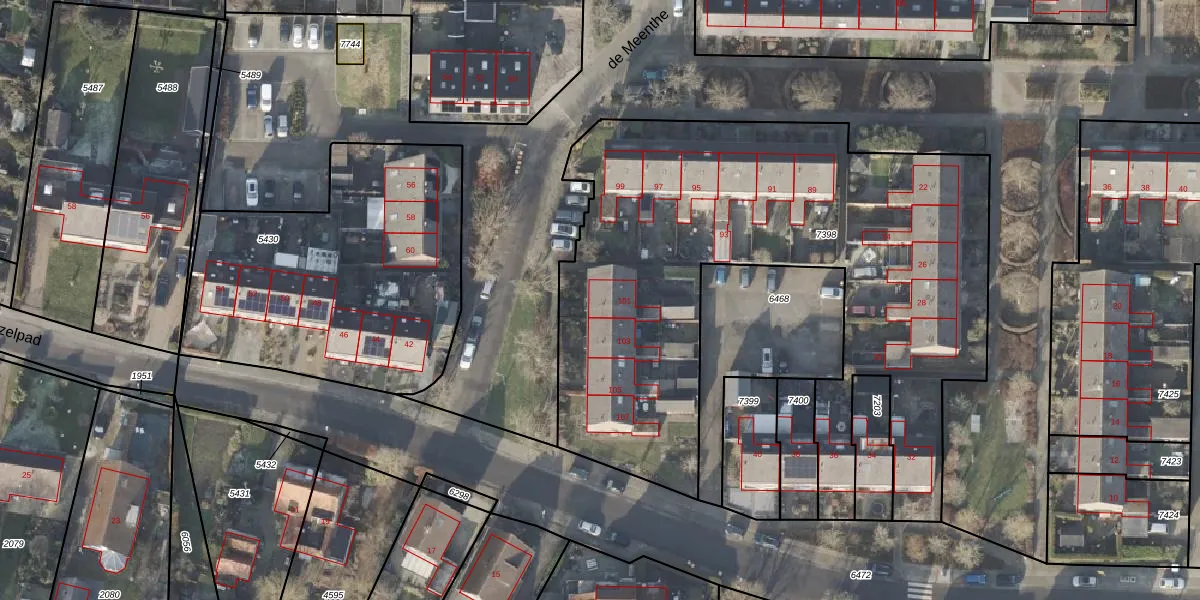 Het perceel waarop de Meenthe 101 staat heeft een oppervlakte van 3127 m². Dit is een zeer groot perceel. De perceeloppervlakte wordt geregistreerd door het Kadaster. Gedetailleerde informatie over de maten van dit perceel kunt u vinden in het rapport Kadastrale kaart met maatvoering van de Meenthe 101.