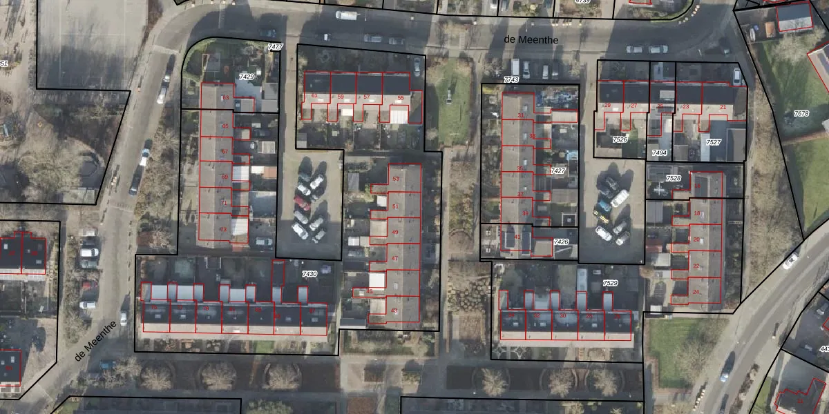 Het perceel waarop de Meenthe 51 staat heeft een oppervlakte van 3776 m². Dit is een zeer groot perceel. De perceeloppervlakte wordt geregistreerd door het Kadaster. Gedetailleerde informatie over de maten van dit perceel kunt u vinden in het rapport Kadastrale kaart met maatvoering van de Meenthe 51.