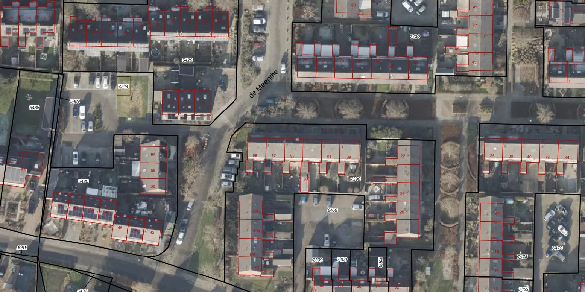 Het perceel waarop de Meenthe 95 staat heeft een oppervlakte van 3127 m². Dit is een zeer groot perceel. De perceeloppervlakte wordt geregistreerd door het Kadaster. Gedetailleerde informatie over de maten van dit perceel kunt u vinden in het rapport Kadastrale kaart met maatvoering van de Meenthe 95.