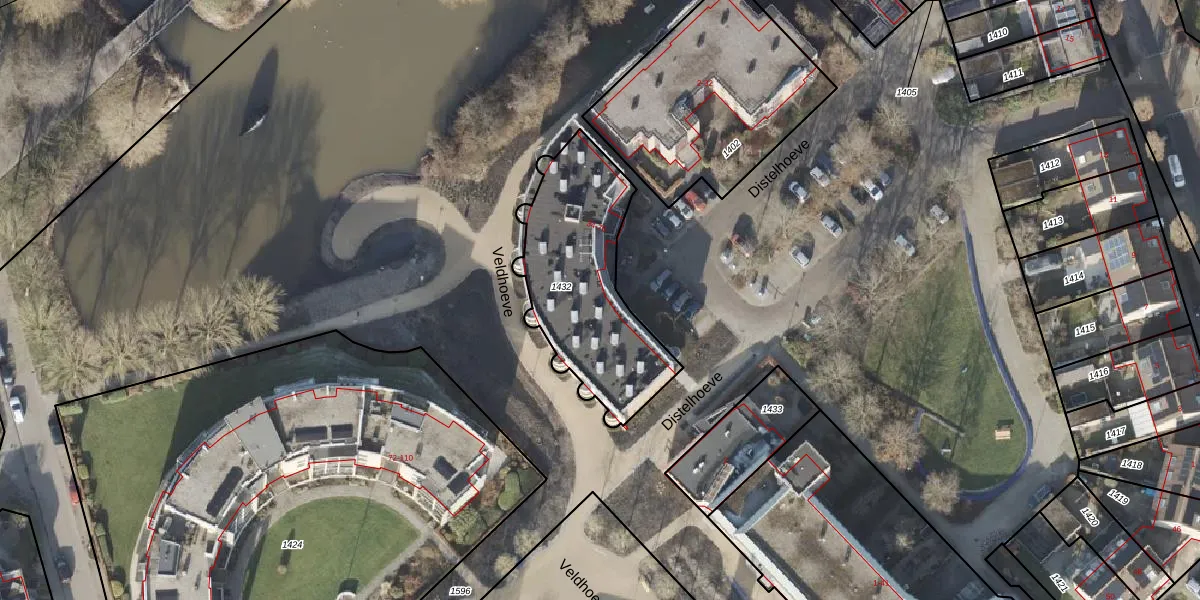 Het perceel waarop Distelhoeve 56 staat heeft een oppervlakte van 730 m². Dit is een groot perceel. De perceeloppervlakte wordt geregistreerd door het Kadaster. Gedetailleerde informatie over de maten van dit perceel kunt u vinden in het rapport Kadastrale kaart met maatvoering van Distelhoeve 56.