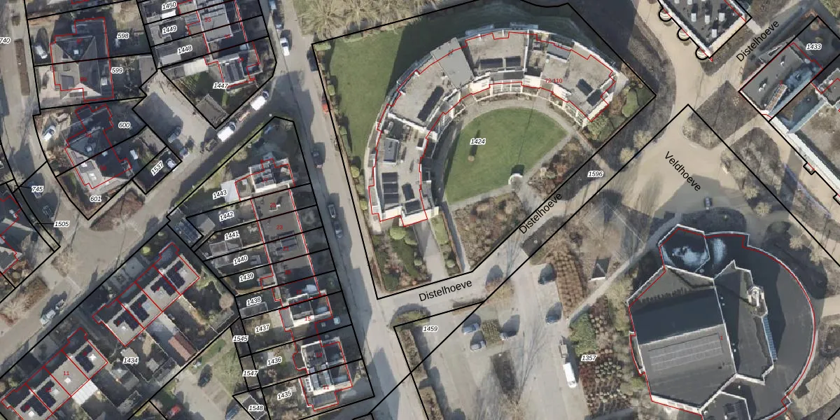 Het perceel waarop Distelhoeve 72 staat heeft een oppervlakte van 3493 m². Dit is een zeer groot perceel. De perceeloppervlakte wordt geregistreerd door het Kadaster. Gedetailleerde informatie over de maten van dit perceel kunt u vinden in het rapport Kadastrale kaart met maatvoering van Distelhoeve 72.