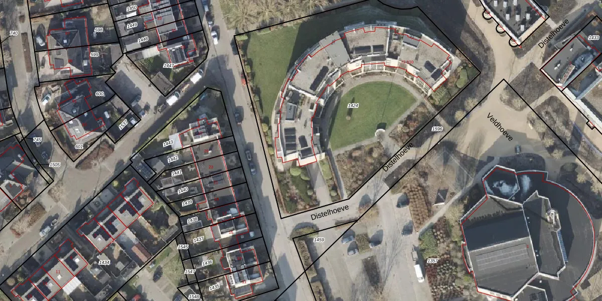 Het perceel waarop Distelhoeve 72-A staat heeft een oppervlakte van 3493 m². Dit is een zeer groot perceel. De perceeloppervlakte wordt geregistreerd door het Kadaster. Gedetailleerde informatie over de maten van dit perceel kunt u vinden in het rapport Kadastrale kaart met maatvoering van Distelhoeve 72-A.