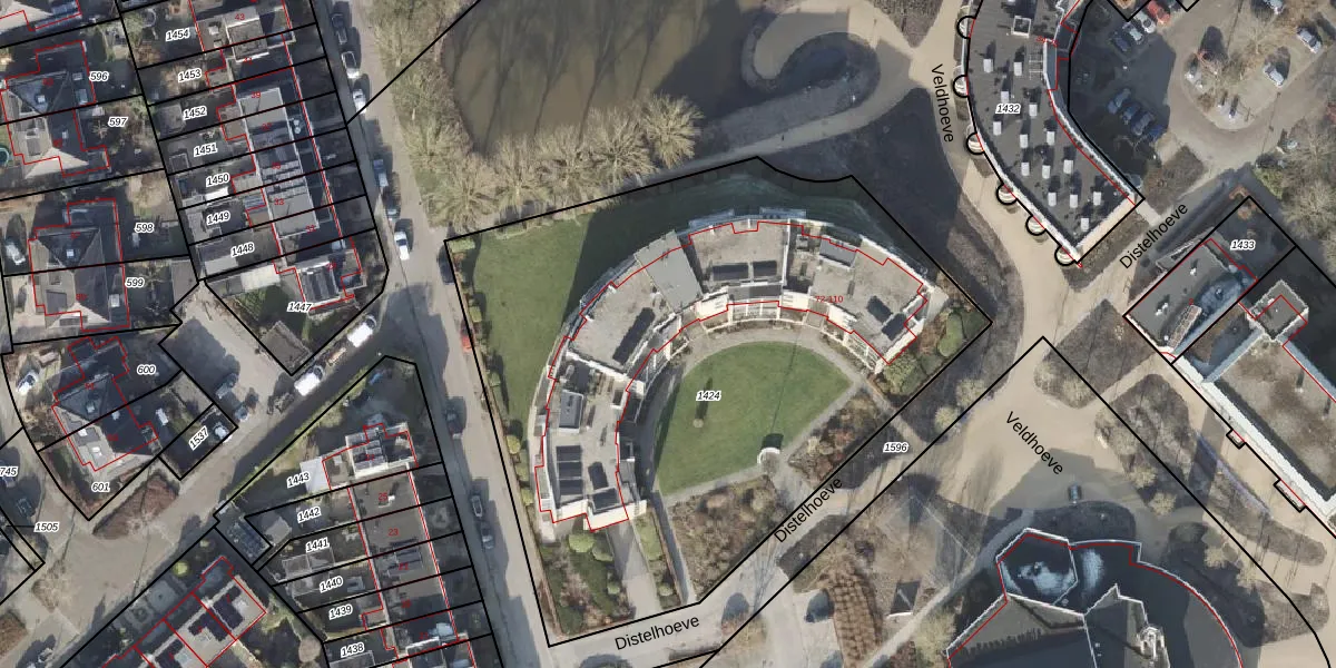 Het perceel waarop Distelhoeve 88 staat heeft een oppervlakte van 3493 m². Dit is een zeer groot perceel. De perceeloppervlakte wordt geregistreerd door het Kadaster. Gedetailleerde informatie over de maten van dit perceel kunt u vinden in het rapport Kadastrale kaart met maatvoering van Distelhoeve 88.