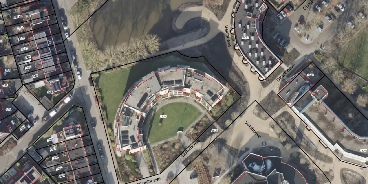 Het perceel waarop Distelhoeve 98 staat heeft een oppervlakte van 3493 m². Dit is een zeer groot perceel. De perceeloppervlakte wordt geregistreerd door het Kadaster. Gedetailleerde informatie over de maten van dit perceel kunt u vinden in het rapport Kadastrale kaart met maatvoering van Distelhoeve 98.