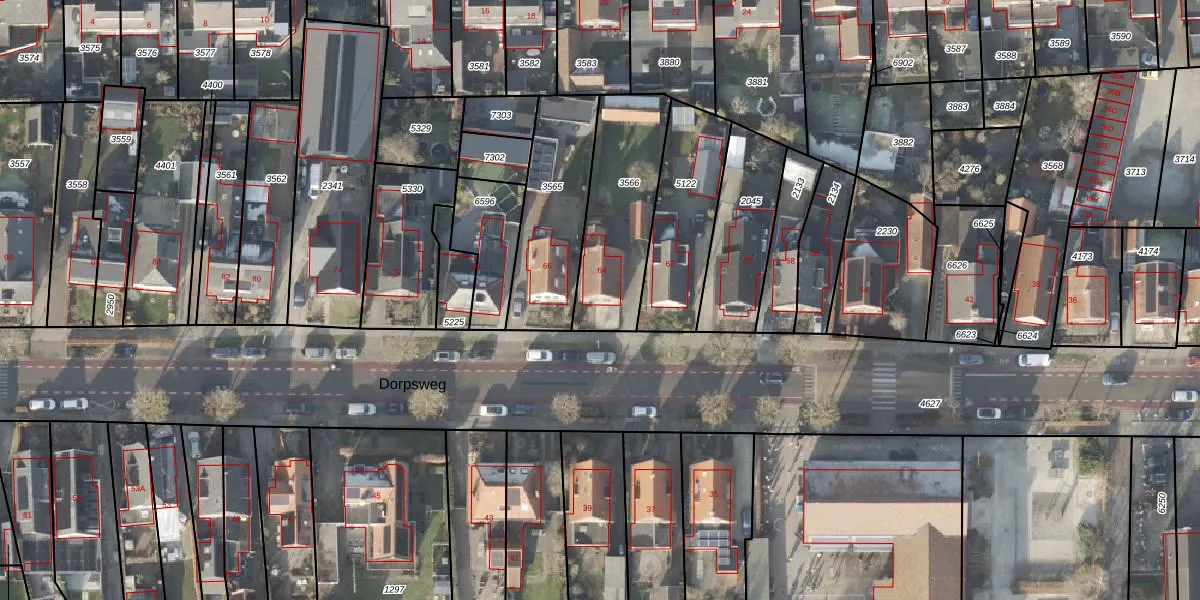 Gebruik de zoekbalk of klik op een perceel voor informatie over de adressen binnen dit perceel.