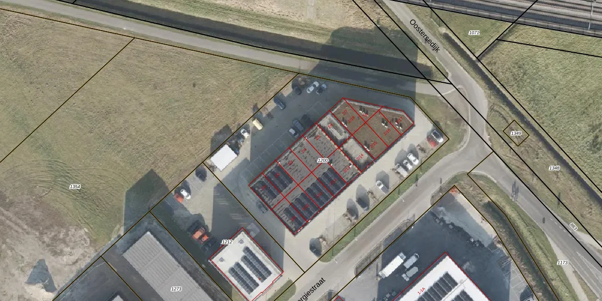 Het perceel waarop Energiestraat 2-4 staat heeft een oppervlakte van 2926 m². Dit is een zeer groot perceel. De perceeloppervlakte wordt geregistreerd door het Kadaster. Gedetailleerde informatie over de maten van dit perceel kunt u vinden in het rapport Kadastrale kaart met maatvoering van Energiestraat 2-4.
