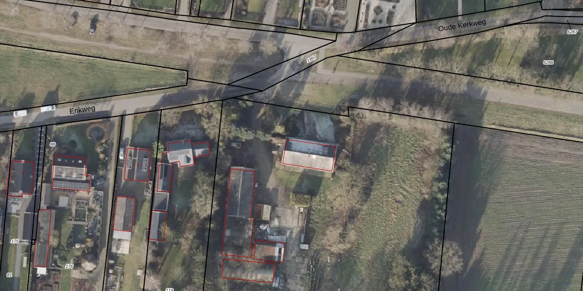 Het perceel waarop Enkweg 1 staat heeft een oppervlakte van 9051 m². Dit is een zeer groot perceel. De perceeloppervlakte wordt geregistreerd door het Kadaster. Gedetailleerde informatie over de maten van dit perceel kunt u vinden in het rapport Kadastrale kaart met maatvoering van Enkweg 1.