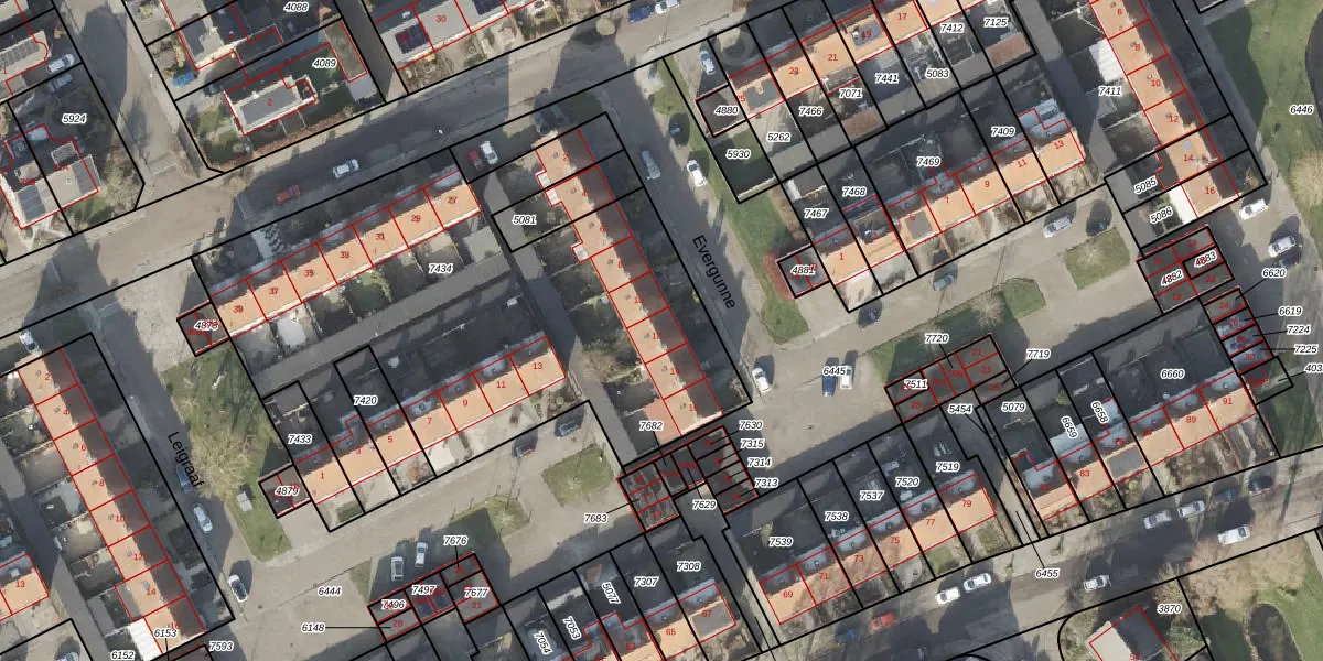 Het perceel waarop Evergunne 12 staat heeft een oppervlakte van 2631 m². Dit is een zeer groot perceel. De perceeloppervlakte wordt geregistreerd door het Kadaster. Gedetailleerde informatie over de maten van dit perceel kunt u vinden in het rapport Kadastrale kaart met maatvoering van Evergunne 12.