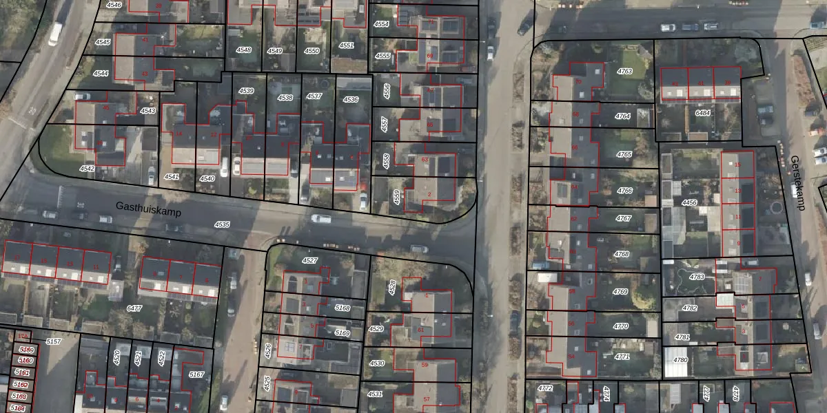Het perceel waarop Gasthuiskamp 2 staat heeft een oppervlakte van 251 m². Dit is een middelgroot perceel. De perceeloppervlakte wordt geregistreerd door het Kadaster. Gedetailleerde informatie over de maten van dit perceel kunt u vinden in het rapport Kadastrale kaart met maatvoering van Gasthuiskamp 2.