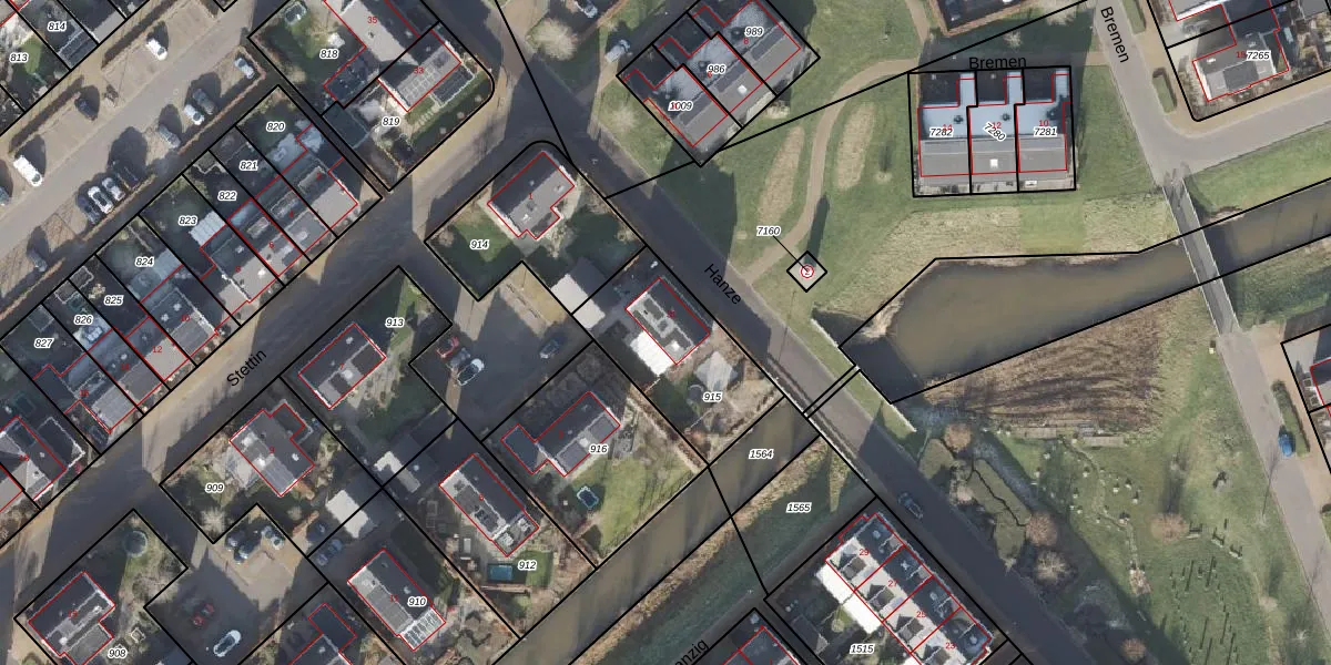 Het perceel waarop Hanze 31 staat heeft een oppervlakte van 476 m². Dit is een groot perceel. De perceeloppervlakte wordt geregistreerd door het Kadaster. Gedetailleerde informatie over de maten van dit perceel kunt u vinden in het rapport Kadastrale kaart met maatvoering van Hanze 31.