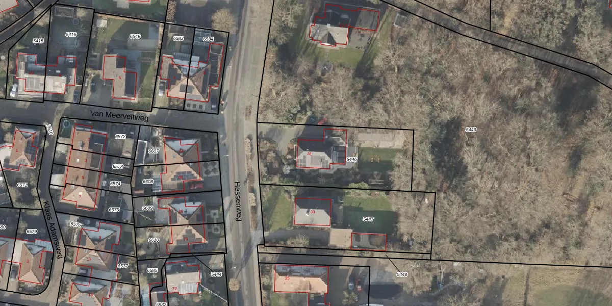 Het perceel waarop Hessenweg 31 staat heeft een oppervlakte van 1025 m². Dit is een zeer groot perceel. De perceeloppervlakte wordt geregistreerd door het Kadaster. Gedetailleerde informatie over de maten van dit perceel kunt u vinden in het rapport Kadastrale kaart met maatvoering van Hessenweg 31.