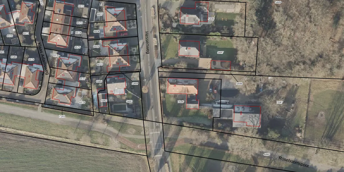 Het perceel waarop Hessenweg 35 staat heeft een oppervlakte van 965 m². Dit is een groot perceel. De perceeloppervlakte wordt geregistreerd door het Kadaster. Gedetailleerde informatie over de maten van dit perceel kunt u vinden in het rapport Kadastrale kaart met maatvoering van Hessenweg 35.