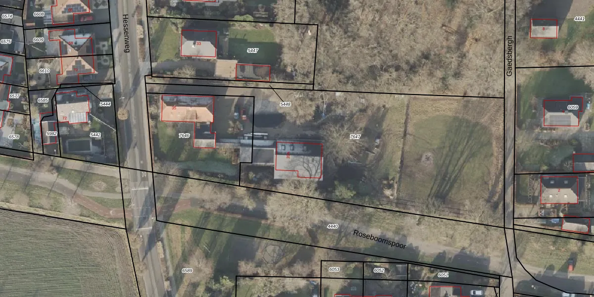 Het perceel waarop Hessenweg 35-A staat heeft een oppervlakte van 3435 m². Dit is een zeer groot perceel. De perceeloppervlakte wordt geregistreerd door het Kadaster. Gedetailleerde informatie over de maten van dit perceel kunt u vinden in het rapport Kadastrale kaart met maatvoering van Hessenweg 35-A.