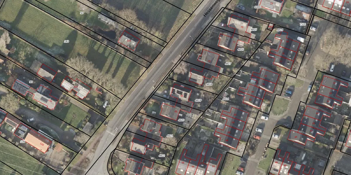 Het perceel waarop Hessenweg 83 staat heeft een oppervlakte van 370 m². Dit is een groot perceel. De perceeloppervlakte wordt geregistreerd door het Kadaster. Gedetailleerde informatie over de maten van dit perceel kunt u vinden in het rapport Kadastrale kaart met maatvoering van Hessenweg 83.