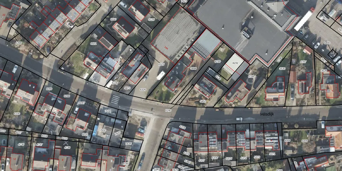 Het perceel waarop Hilsdijk 14 staat heeft een oppervlakte van 675 m². Dit is een groot perceel. De perceeloppervlakte wordt geregistreerd door het Kadaster. Gedetailleerde informatie over de maten van dit perceel kunt u vinden in het rapport Kadastrale kaart met maatvoering van Hilsdijk 14.