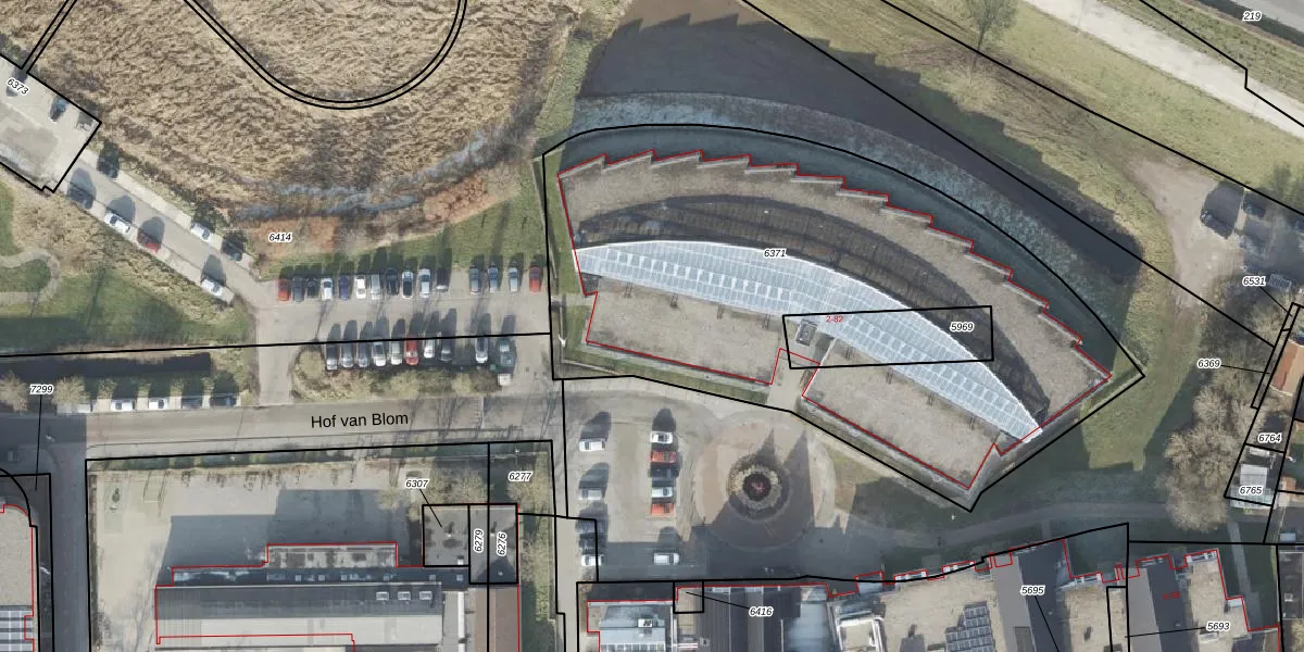 Het perceel waarop Hof van Blom 18 staat heeft een oppervlakte van 3092 m². Dit is een zeer groot perceel. De perceeloppervlakte wordt geregistreerd door het Kadaster. Gedetailleerde informatie over de maten van dit perceel kunt u vinden in het rapport Kadastrale kaart met maatvoering van Hof van Blom 18.