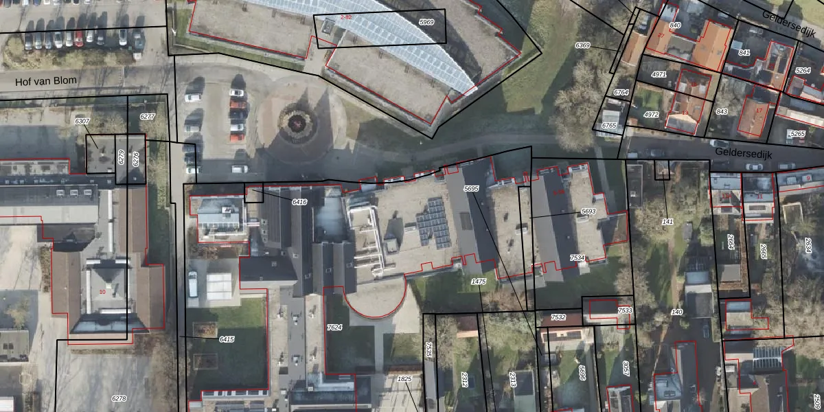 Het perceel waarop Hof van Blom 35 staat heeft een oppervlakte van 5301 m². Dit is een zeer groot perceel. De perceeloppervlakte wordt geregistreerd door het Kadaster. Gedetailleerde informatie over de maten van dit perceel kunt u vinden in het rapport Kadastrale kaart met maatvoering van Hof van Blom 35.
