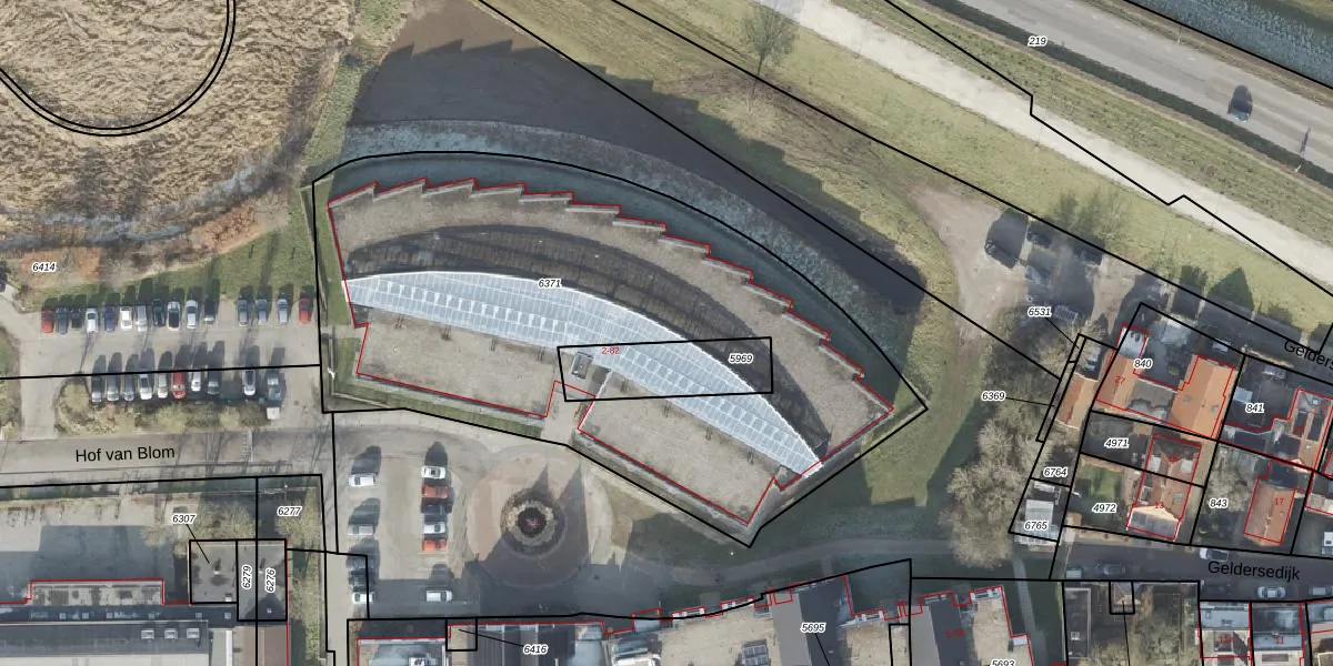 Het perceel waarop Hof van Blom 46 staat heeft een oppervlakte van 3092 m². Dit is een zeer groot perceel. De perceeloppervlakte wordt geregistreerd door het Kadaster. Gedetailleerde informatie over de maten van dit perceel kunt u vinden in het rapport Kadastrale kaart met maatvoering van Hof van Blom 46.