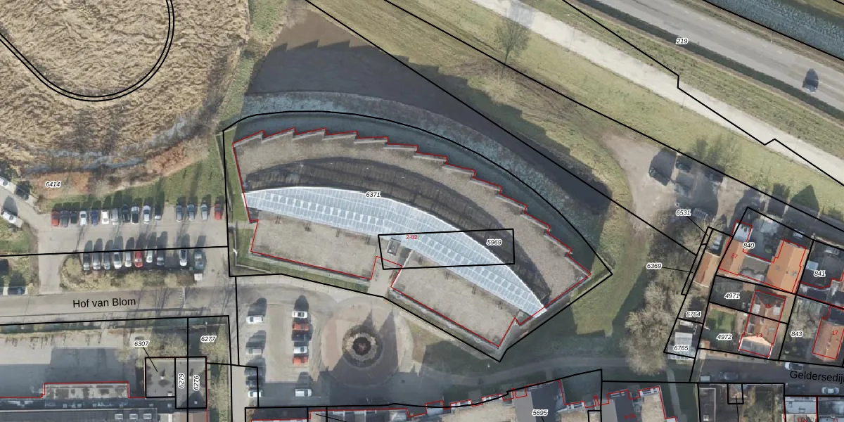 Het perceel waarop Hof van Blom 48 staat heeft een oppervlakte van 3092 m². Dit is een zeer groot perceel. De perceeloppervlakte wordt geregistreerd door het Kadaster. Gedetailleerde informatie over de maten van dit perceel kunt u vinden in het rapport Kadastrale kaart met maatvoering van Hof van Blom 48.
