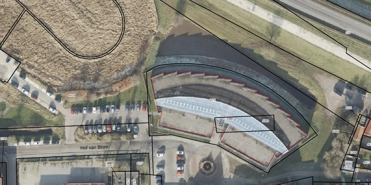 Het perceel waarop Hof van Blom 56 staat heeft een oppervlakte van 3092 m². Dit is een zeer groot perceel. De perceeloppervlakte wordt geregistreerd door het Kadaster. Gedetailleerde informatie over de maten van dit perceel kunt u vinden in het rapport Kadastrale kaart met maatvoering van Hof van Blom 56.