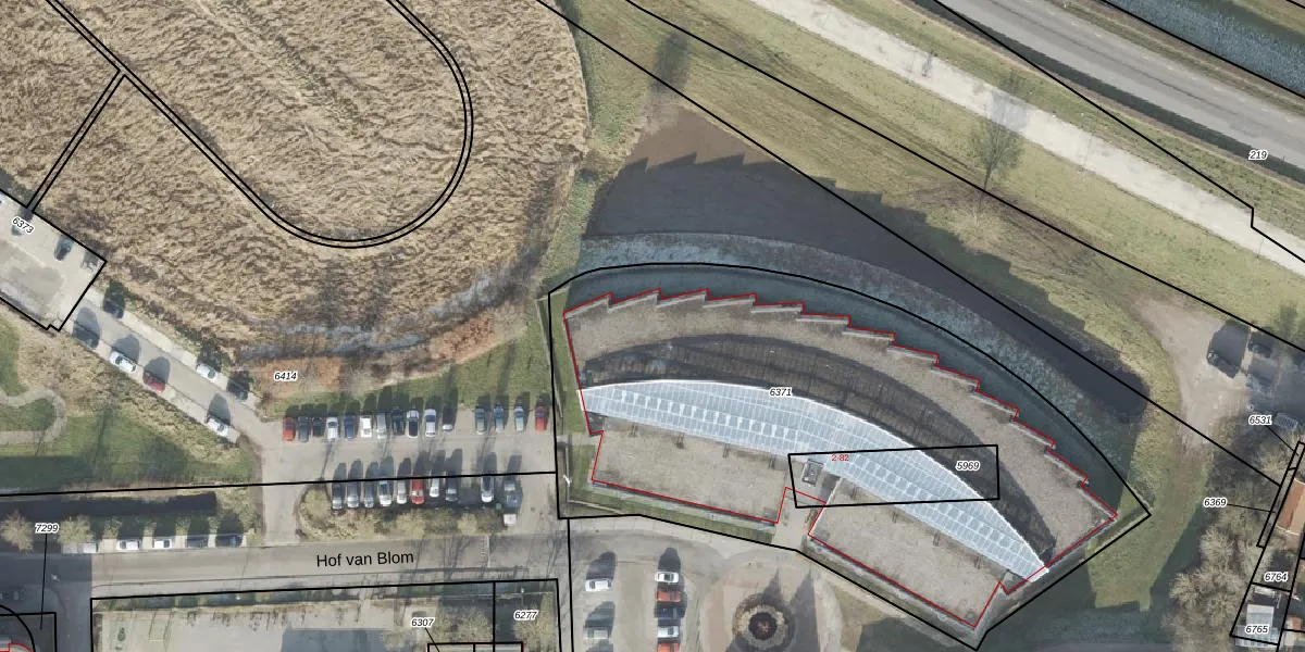 Het perceel waarop Hof van Blom 82 staat heeft een oppervlakte van 3092 m². Dit is een zeer groot perceel. De perceeloppervlakte wordt geregistreerd door het Kadaster. Gedetailleerde informatie over de maten van dit perceel kunt u vinden in het rapport Kadastrale kaart met maatvoering van Hof van Blom 82.