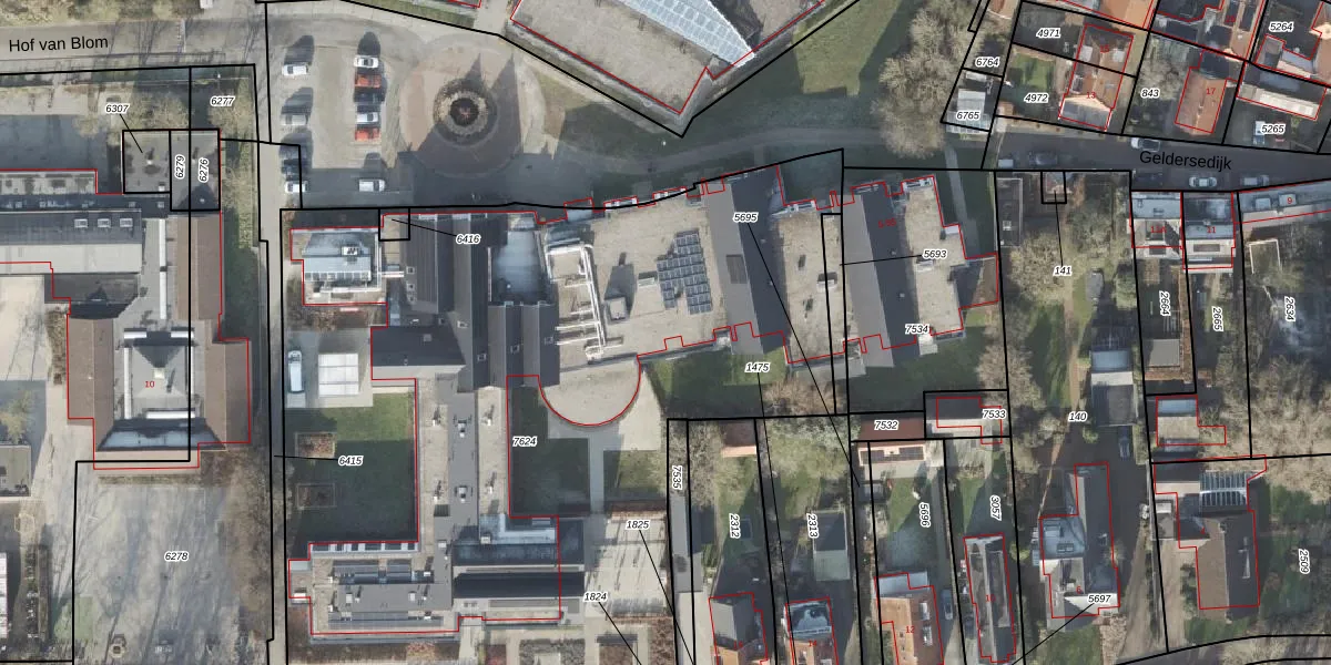 Het perceel waarop Hof van Blom 9 staat heeft een oppervlakte van 5301 m². Dit is een zeer groot perceel. De perceeloppervlakte wordt geregistreerd door het Kadaster. Gedetailleerde informatie over de maten van dit perceel kunt u vinden in het rapport Kadastrale kaart met maatvoering van Hof van Blom 9.