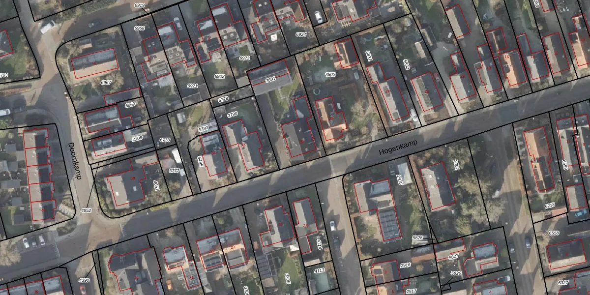 Het perceel waarop Hogenkamp 30 staat heeft een oppervlakte van 618 m². Dit is een groot perceel. De perceeloppervlakte wordt geregistreerd door het Kadaster. Gedetailleerde informatie over de maten van dit perceel kunt u vinden in het rapport Kadastrale kaart met maatvoering van Hogenkamp 30.