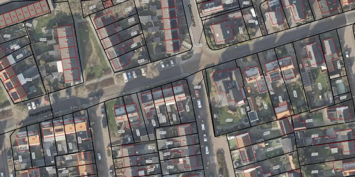 Gebruik de zoekbalk of klik op een perceel voor informatie over de adressen binnen dit perceel.