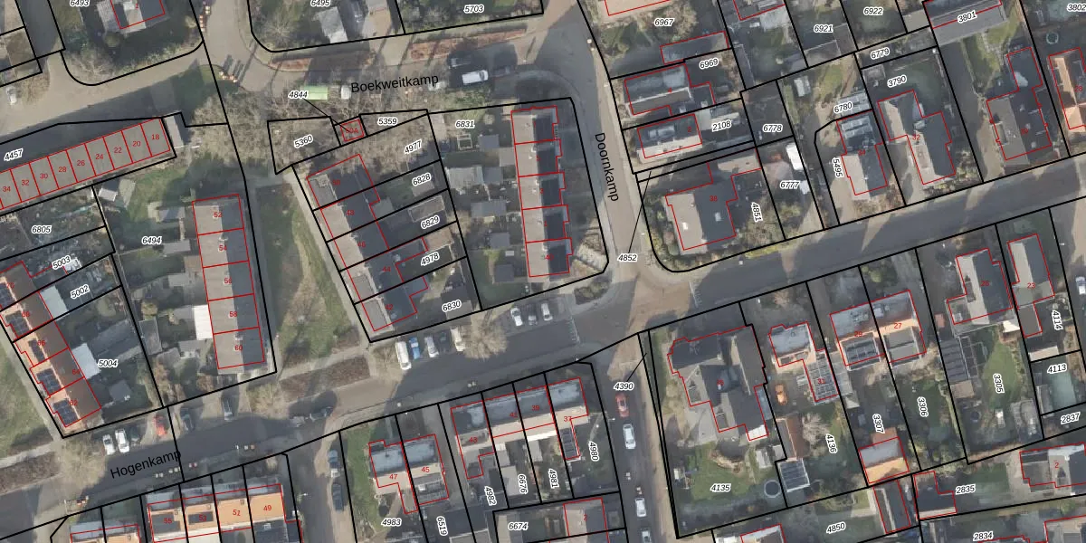 Het perceel waarop Hogenkamp 40 staat heeft een oppervlakte van 912 m². Dit is een groot perceel. De perceeloppervlakte wordt geregistreerd door het Kadaster. Gedetailleerde informatie over de maten van dit perceel kunt u vinden in het rapport Kadastrale kaart met maatvoering van Hogenkamp 40.