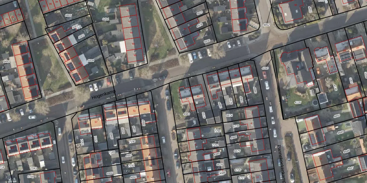 Het perceel waarop Hogenkamp 47 staat heeft een oppervlakte van 300 m². Dit is een groot perceel. De perceeloppervlakte wordt geregistreerd door het Kadaster. Gedetailleerde informatie over de maten van dit perceel kunt u vinden in het rapport Kadastrale kaart met maatvoering van Hogenkamp 47.