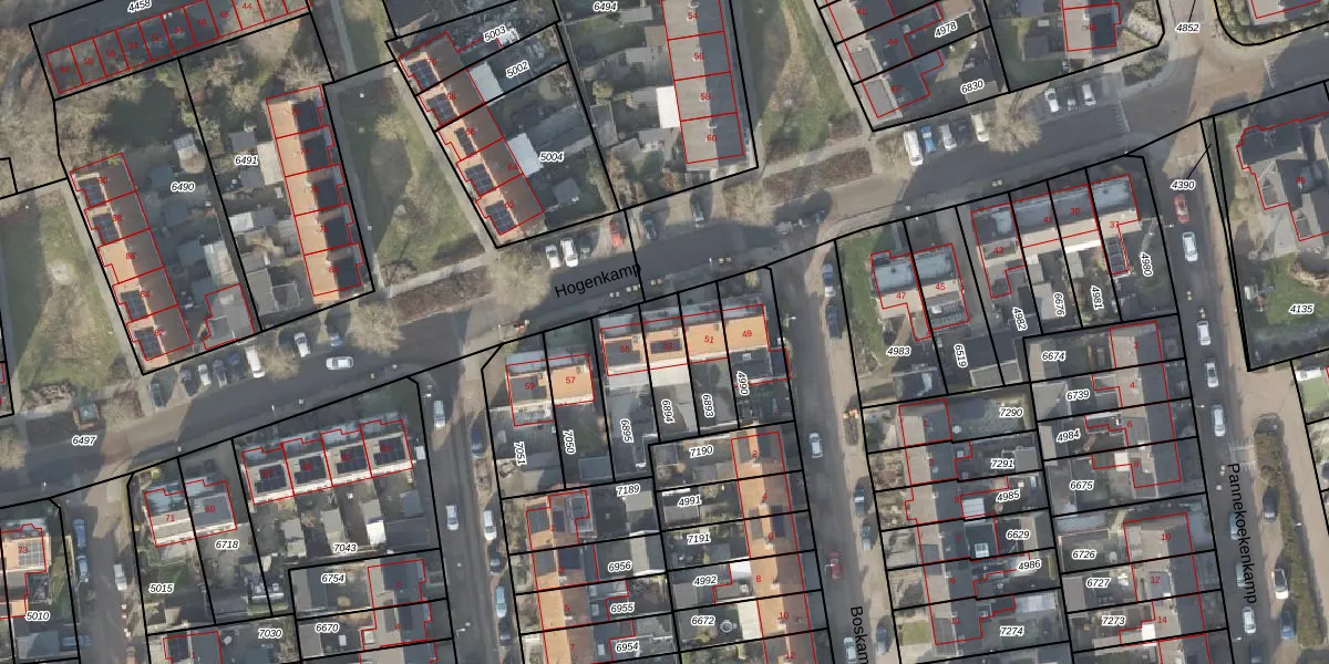 Het perceel waarop Hogenkamp 53 staat heeft een oppervlakte van 131 m². Dit is een middelgroot perceel. De perceeloppervlakte wordt geregistreerd door het Kadaster. Gedetailleerde informatie over de maten van dit perceel kunt u vinden in het rapport Kadastrale kaart met maatvoering van Hogenkamp 53.