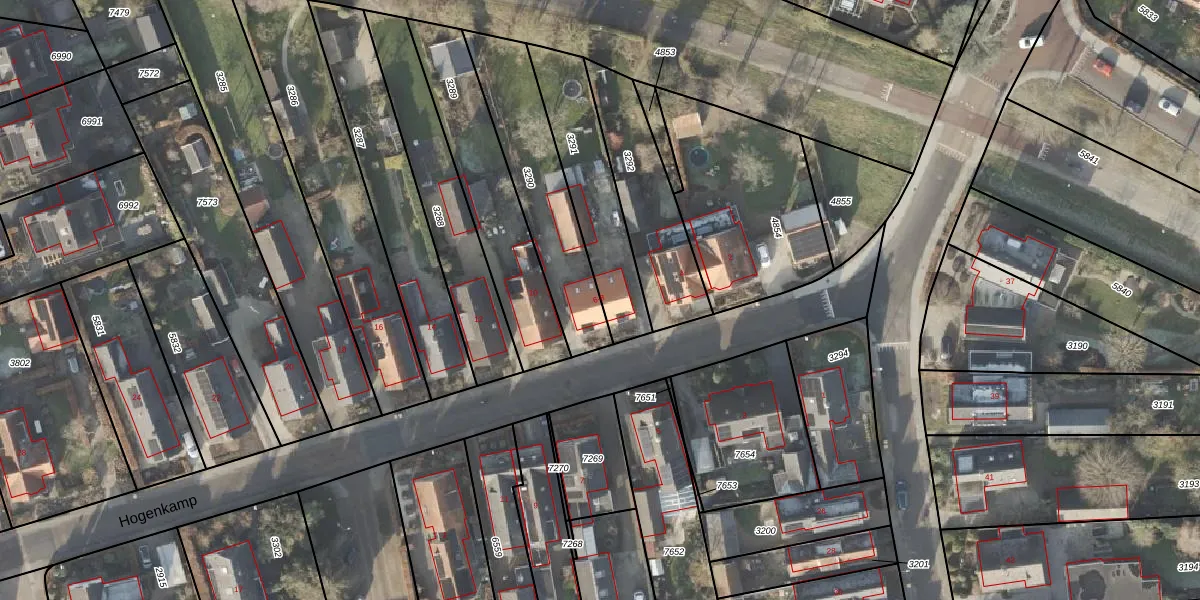 Het perceel waarop Hogenkamp 8 staat heeft een oppervlakte van 437 m². Dit is een groot perceel. De perceeloppervlakte wordt geregistreerd door het Kadaster. Gedetailleerde informatie over de maten van dit perceel kunt u vinden in het rapport Kadastrale kaart met maatvoering van Hogenkamp 8.