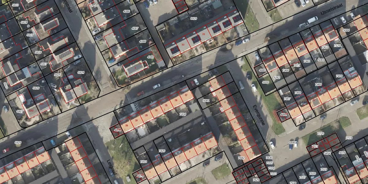Het perceel waarop IJsselstraat 27 staat heeft een oppervlakte van 2631 m². Dit is een zeer groot perceel. De perceeloppervlakte wordt geregistreerd door het Kadaster. Gedetailleerde informatie over de maten van dit perceel kunt u vinden in het rapport Kadastrale kaart met maatvoering van IJsselstraat 27.