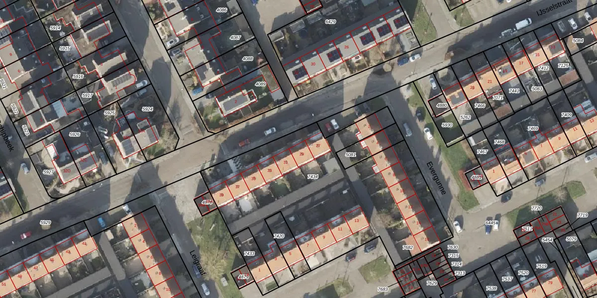 Het perceel waarop IJsselstraat 29 staat heeft een oppervlakte van 2631 m². Dit is een zeer groot perceel. De perceeloppervlakte wordt geregistreerd door het Kadaster. Gedetailleerde informatie over de maten van dit perceel kunt u vinden in het rapport Kadastrale kaart met maatvoering van IJsselstraat 29.