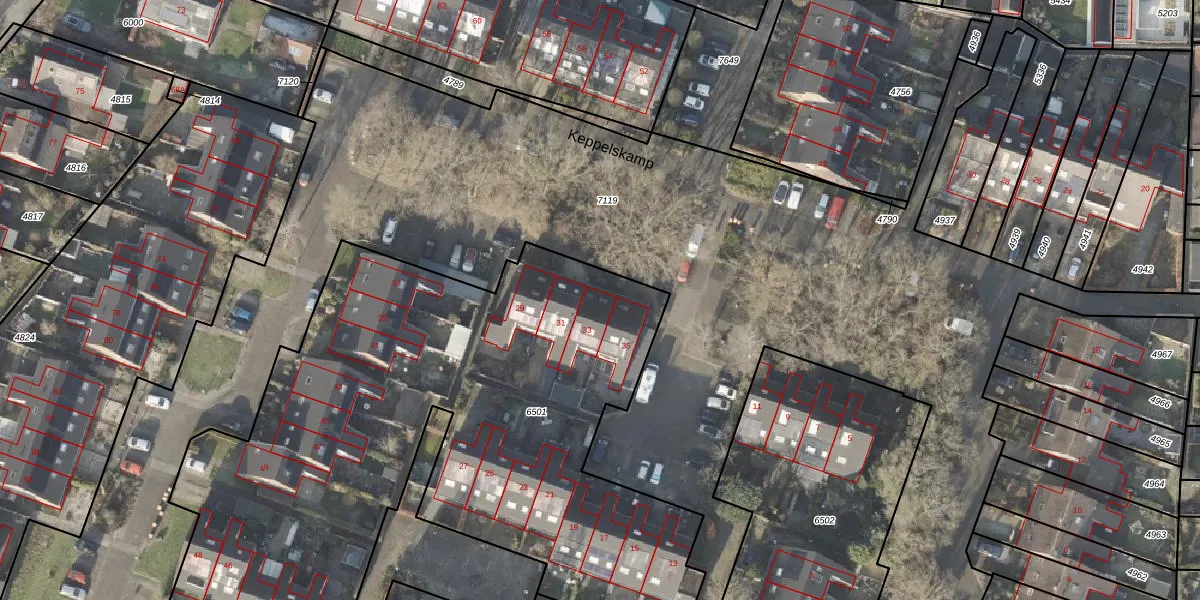 Het perceel waarop Keppelskamp 33 staat heeft een oppervlakte van 3930 m². Dit is een zeer groot perceel. De perceeloppervlakte wordt geregistreerd door het Kadaster. Gedetailleerde informatie over de maten van dit perceel kunt u vinden in het rapport Kadastrale kaart met maatvoering van Keppelskamp 33.