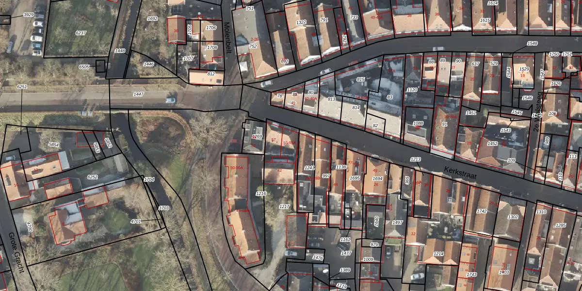 Het perceel waarop Kerkstraat 55-A staat heeft een oppervlakte van 637 m². Dit is een groot perceel. De perceeloppervlakte wordt geregistreerd door het Kadaster. Gedetailleerde informatie over de maten van dit perceel kunt u vinden in het rapport Kadastrale kaart met maatvoering van Kerkstraat 55-A.