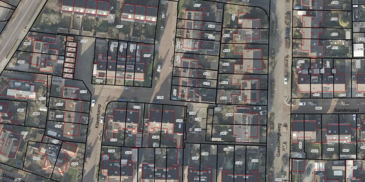 Gebruik de zoekbalk of klik op een perceel voor informatie over de adressen binnen dit perceel.