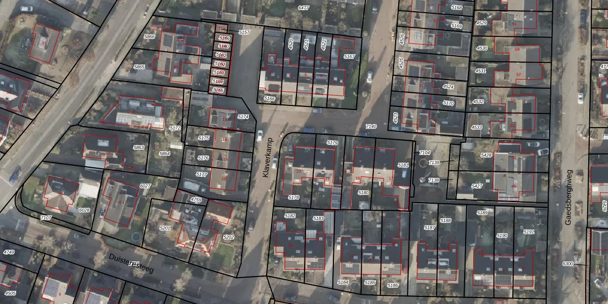 Gebruik de zoekbalk of klik op een perceel voor informatie over de adressen binnen dit perceel.