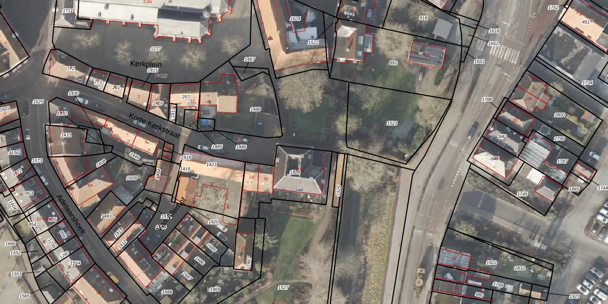Het perceel waarop Korte Kerkstraat 20 staat heeft een oppervlakte van 453 m². Dit is een groot perceel. De perceeloppervlakte wordt geregistreerd door het Kadaster. Gedetailleerde informatie over de maten van dit perceel kunt u vinden in het rapport Kadastrale kaart met maatvoering van Korte Kerkstraat 20.