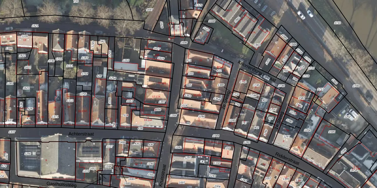 Het perceel waarop Kruisstraat 16 staat heeft een oppervlakte van 79 m². Dit is een klein perceel. De perceeloppervlakte wordt geregistreerd door het Kadaster. Gedetailleerde informatie over de maten van dit perceel kunt u vinden in het rapport Kadastrale kaart met maatvoering van Kruisstraat 16.