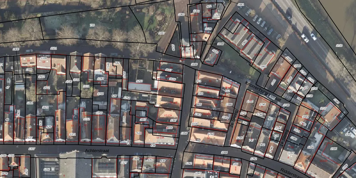 Het perceel waarop Kruisstraat 21 staat heeft een oppervlakte van 408 m². Dit is een groot perceel. De perceeloppervlakte wordt geregistreerd door het Kadaster. Gedetailleerde informatie over de maten van dit perceel kunt u vinden in het rapport Kadastrale kaart met maatvoering van Kruisstraat 21.
