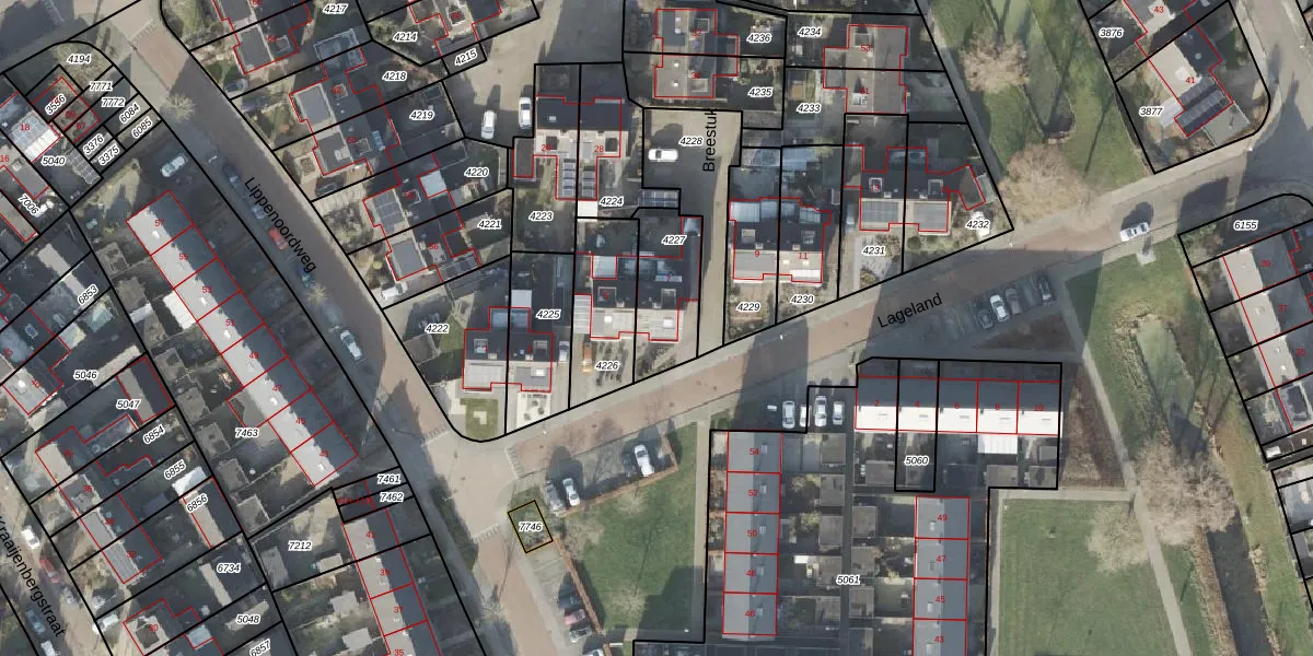 Het perceel waarop Lageland 7 staat heeft een oppervlakte van 235 m². Dit is een middelgroot perceel. De perceeloppervlakte wordt geregistreerd door het Kadaster. Gedetailleerde informatie over de maten van dit perceel kunt u vinden in het rapport Kadastrale kaart met maatvoering van Lageland 7.