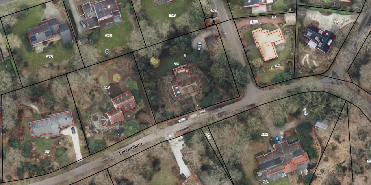 Het perceel waarop Langenberg 5 staat heeft een oppervlakte van 1955 m². Dit is een zeer groot perceel. De perceeloppervlakte wordt geregistreerd door het Kadaster. Gedetailleerde informatie over de maten van dit perceel kunt u vinden in het rapport Kadastrale kaart met maatvoering van Langenberg 5.