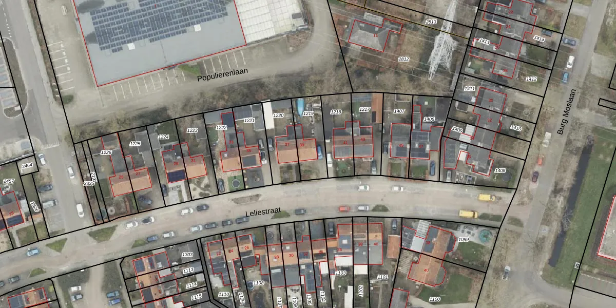 Gebruik de zoekbalk of klik op een perceel voor informatie over de adressen binnen dit perceel.