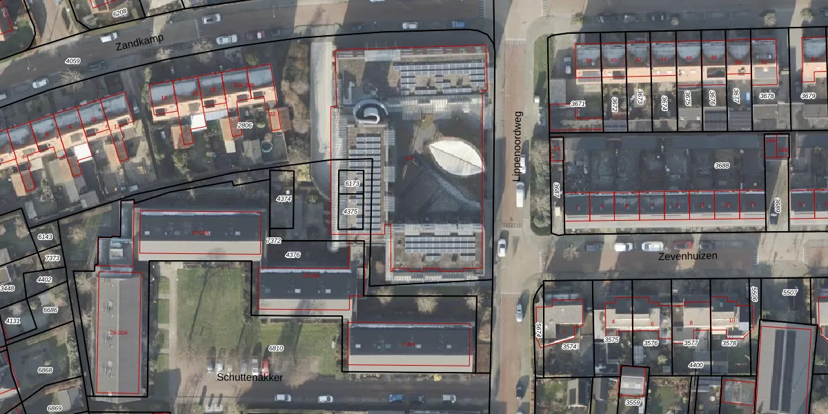 Het perceel waarop Lippenoordweg 1-10 staat heeft een oppervlakte van 4714 m². Dit is een zeer groot perceel. De perceeloppervlakte wordt geregistreerd door het Kadaster. Gedetailleerde informatie over de maten van dit perceel kunt u vinden in het rapport Kadastrale kaart met maatvoering van Lippenoordweg 1-10.