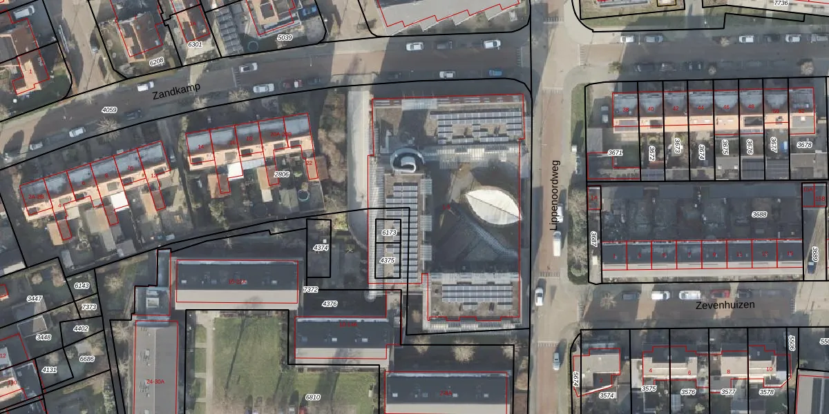 Het perceel waarop Lippenoordweg 1-18 staat heeft een oppervlakte van 4714 m². Dit is een zeer groot perceel. De perceeloppervlakte wordt geregistreerd door het Kadaster. Gedetailleerde informatie over de maten van dit perceel kunt u vinden in het rapport Kadastrale kaart met maatvoering van Lippenoordweg 1-18.