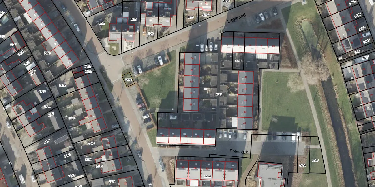 Het perceel waarop Lippenoordweg 48 staat heeft een oppervlakte van 2477 m². Dit is een zeer groot perceel. De perceeloppervlakte wordt geregistreerd door het Kadaster. Gedetailleerde informatie over de maten van dit perceel kunt u vinden in het rapport Kadastrale kaart met maatvoering van Lippenoordweg 48.